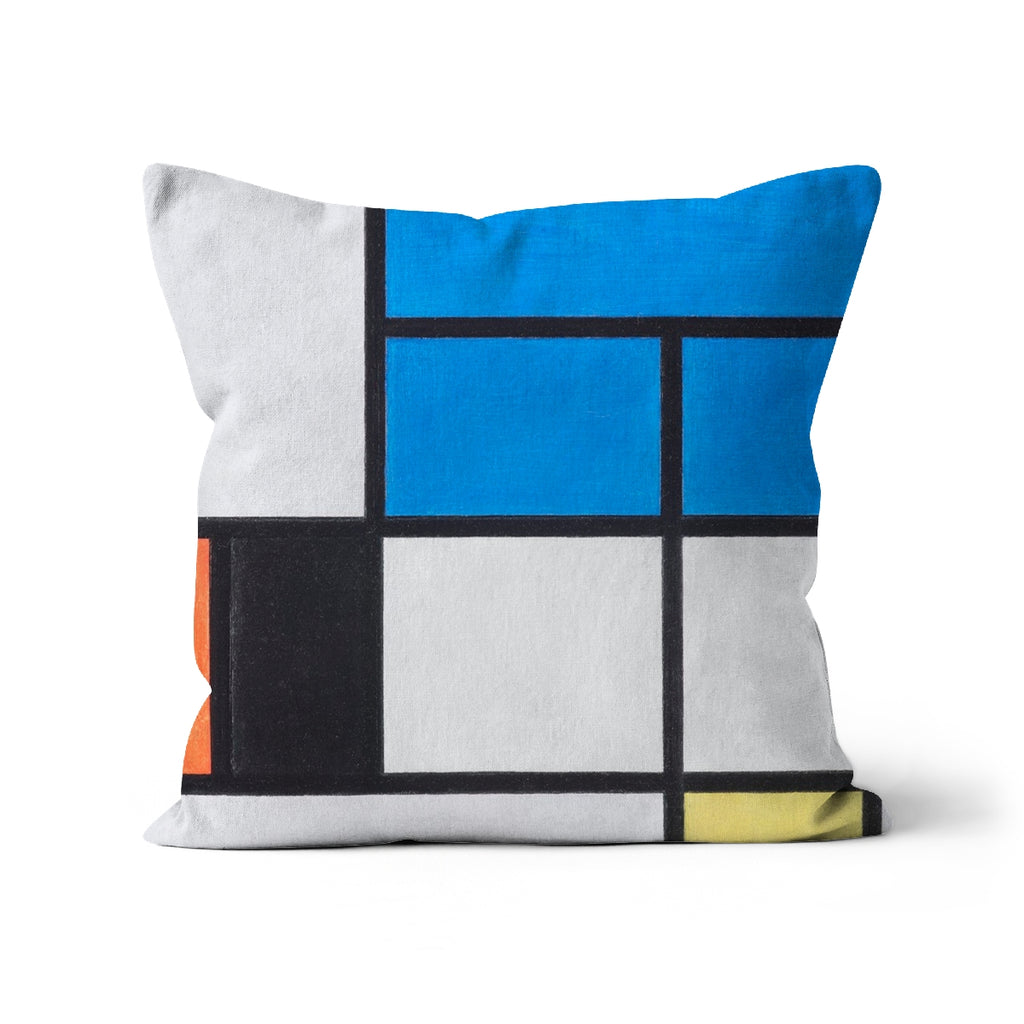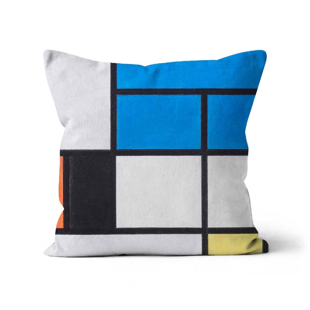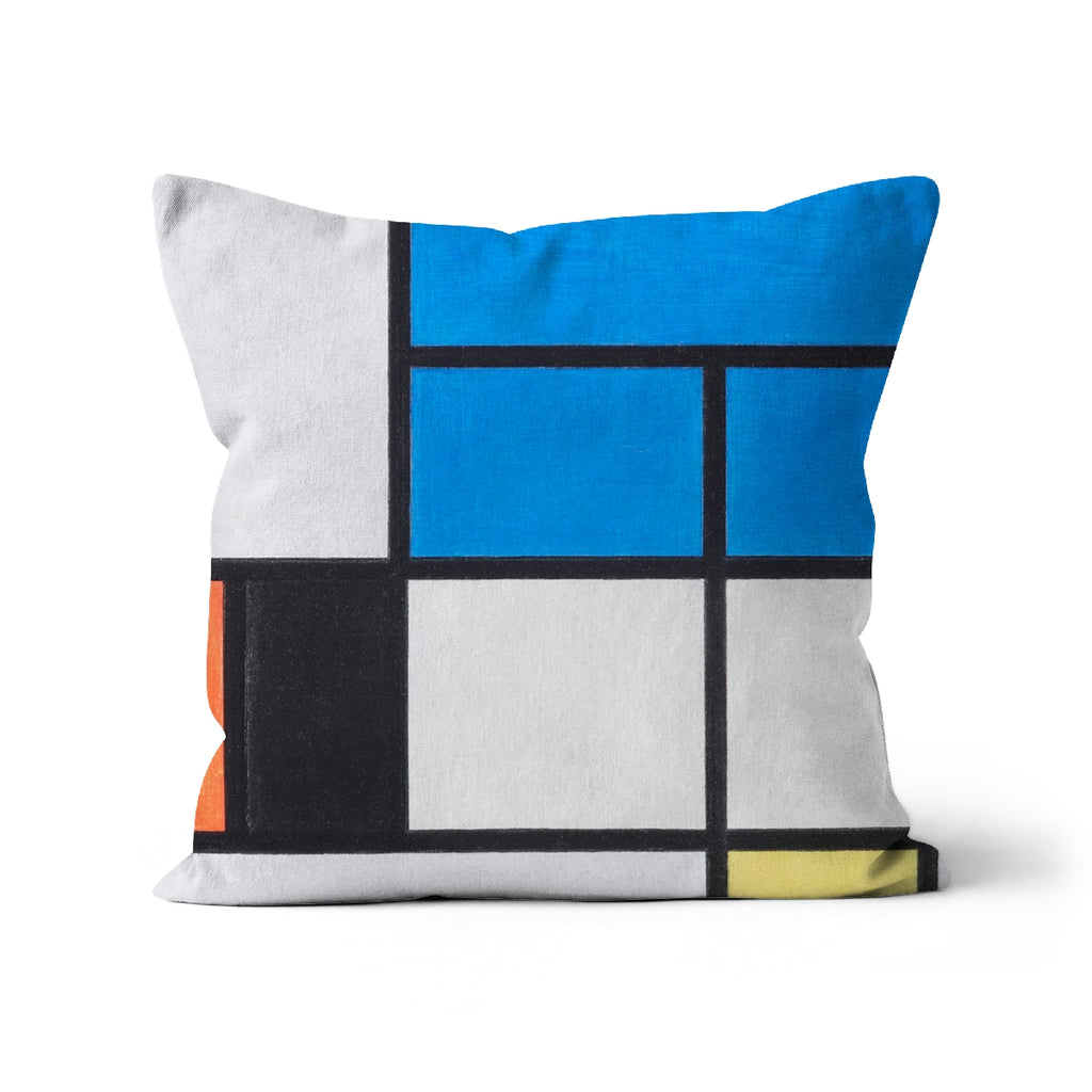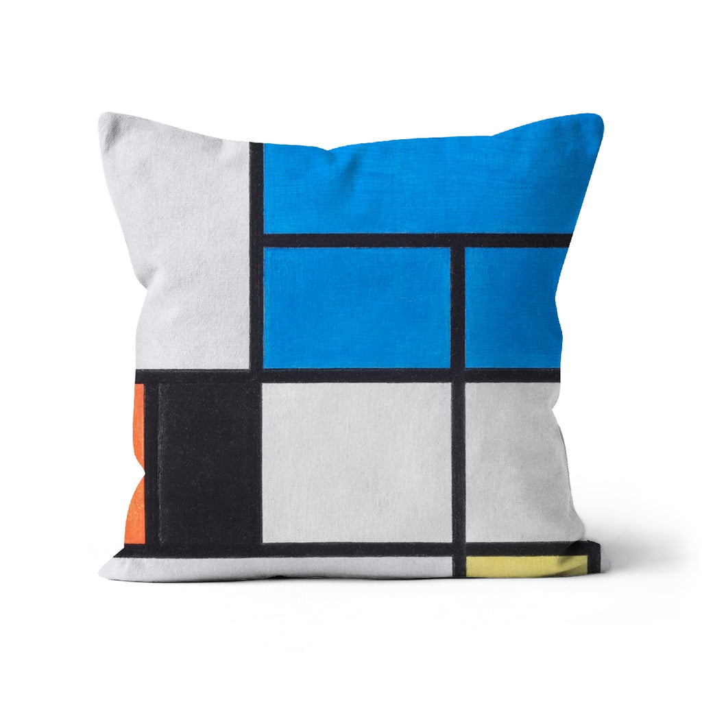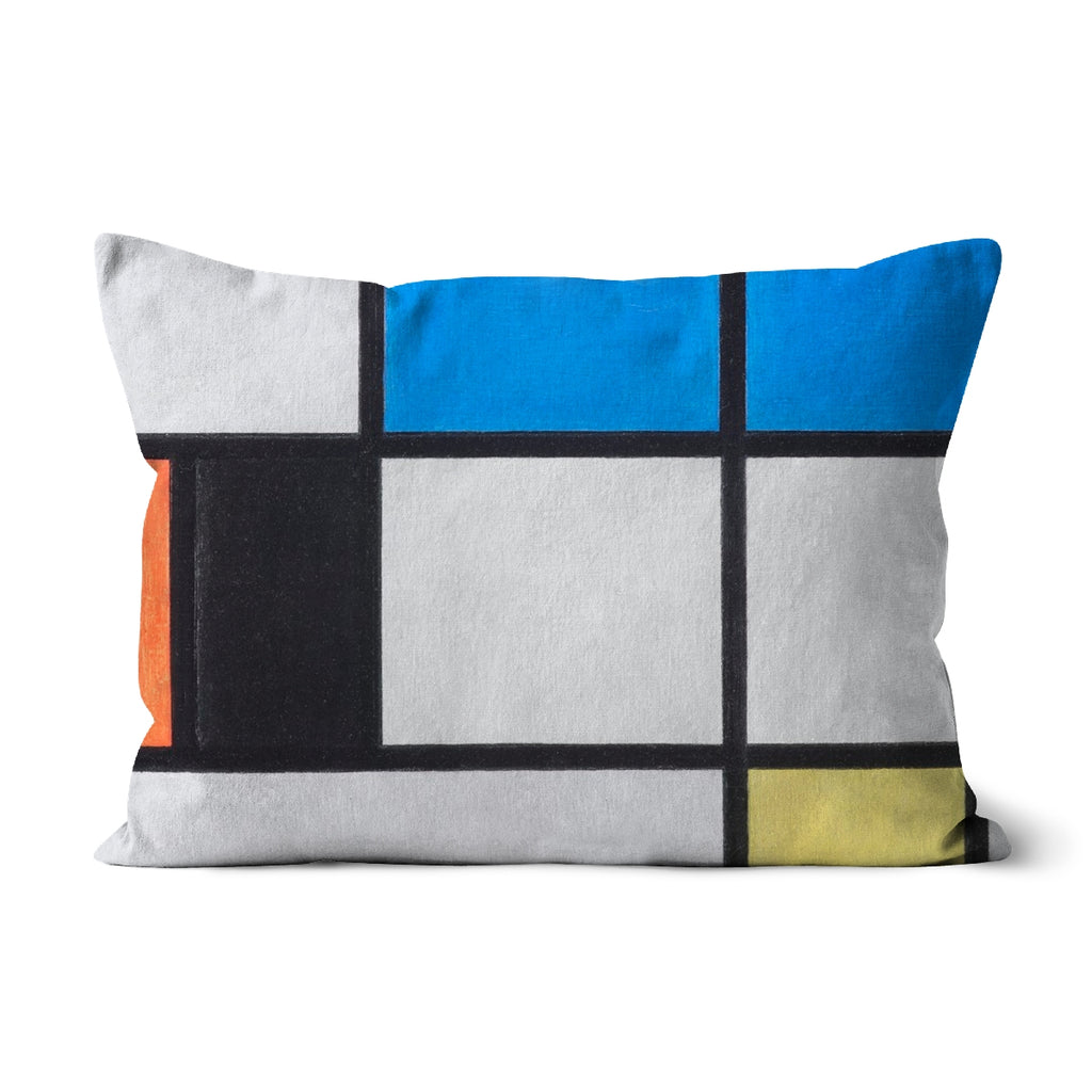 'Composition with Large Blue Plane, Red, Black, Yellow, and Gray' by Piet Mondrian Cushion
